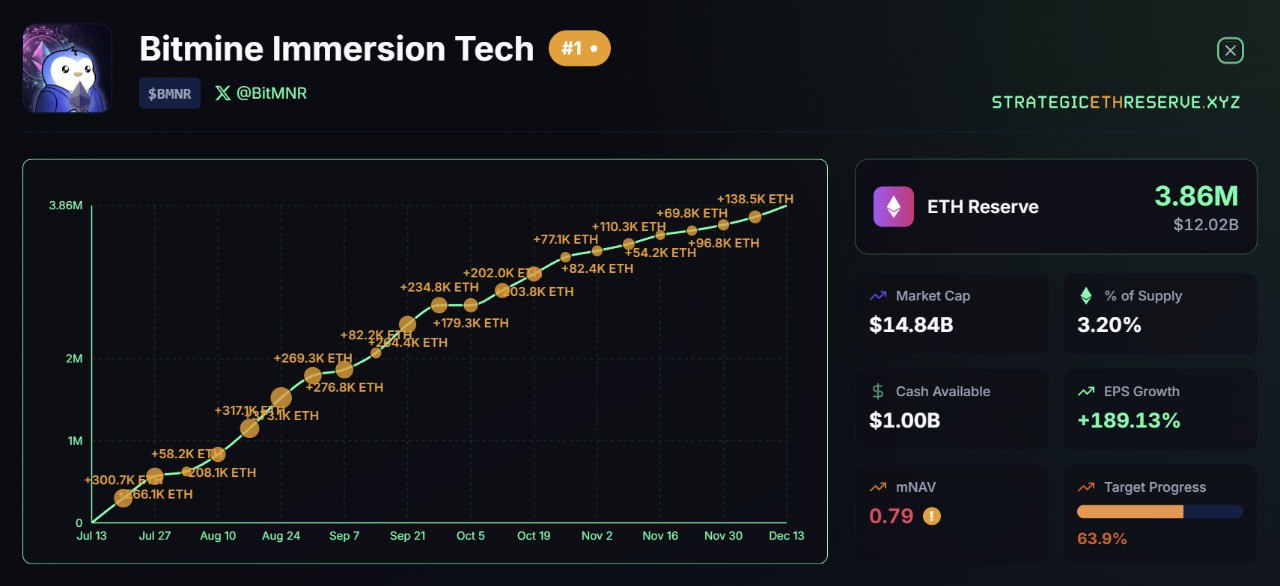 ๐จ NOW: Bitmine now holds 3.2% of the current $ETH supply worth $12B.
