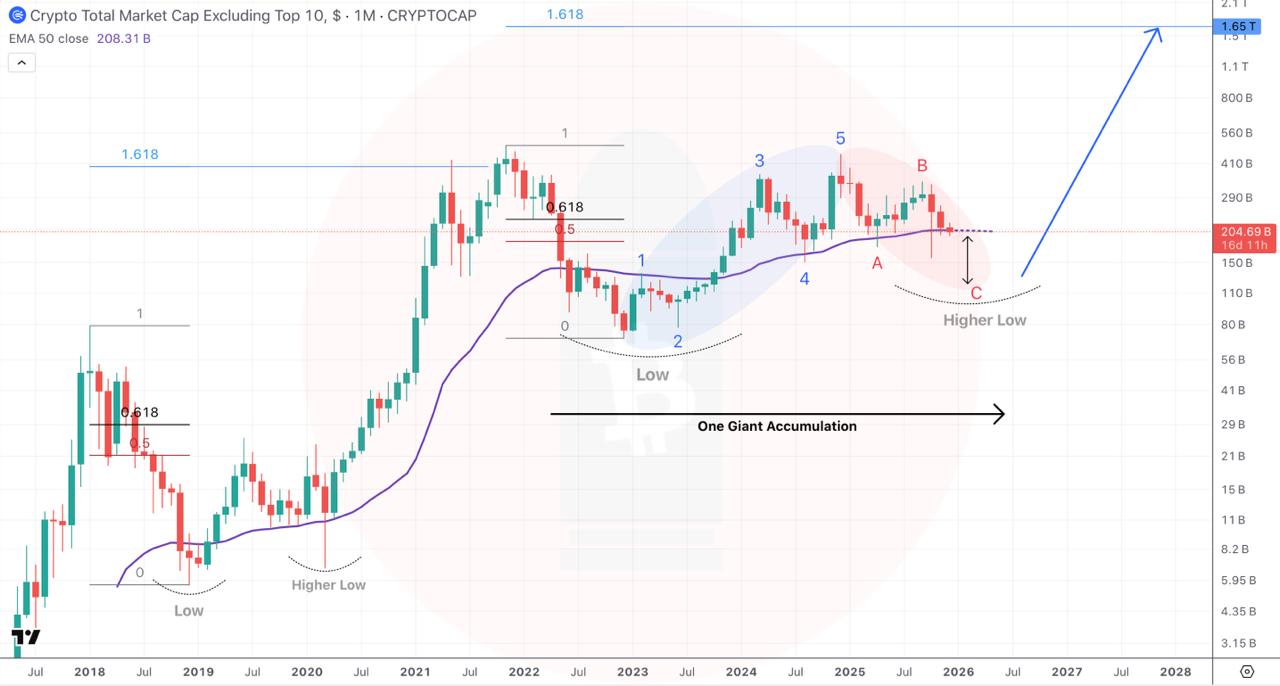 Currently weβre sitting at the EMA50 Support and if we lose it next year (which I think is likely) weβll drop to $110-140B and finish wave C